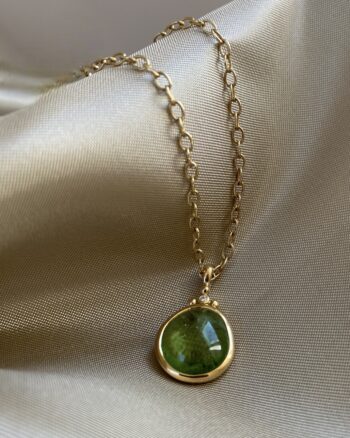 Elegant vedhæng i 18 karat guld med ædelsten af grøn peridot og diamant