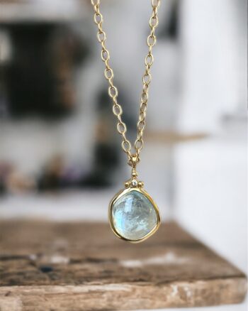 Halskæden måler 47 cm og kan justeres til 45 cm og 42 cm
